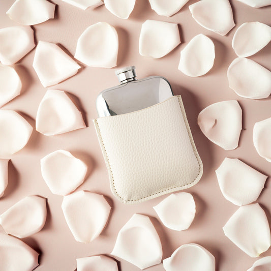HIPLE® 6oz Hip Flasks for Women Gift with Free Hiple Handkerchief Premium Ivory PU Leather Sleeve and Stainless Steel Funnel Bridesmaid Gift and Ladies Hip Flask Womens Flask Set Whiskey Flask…